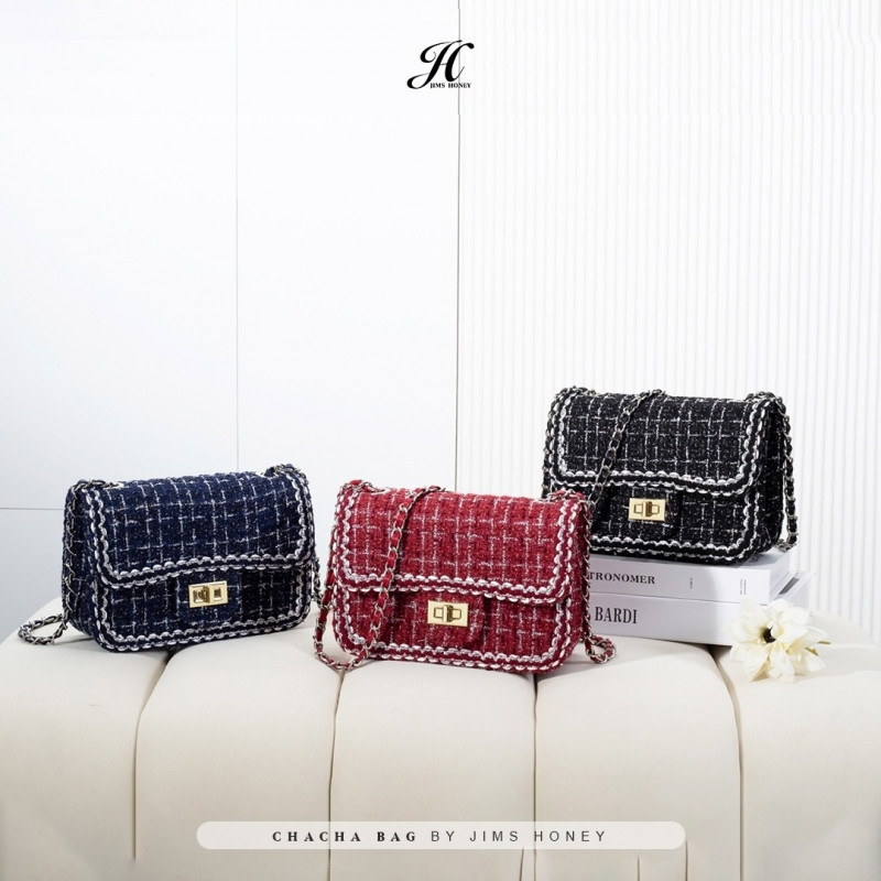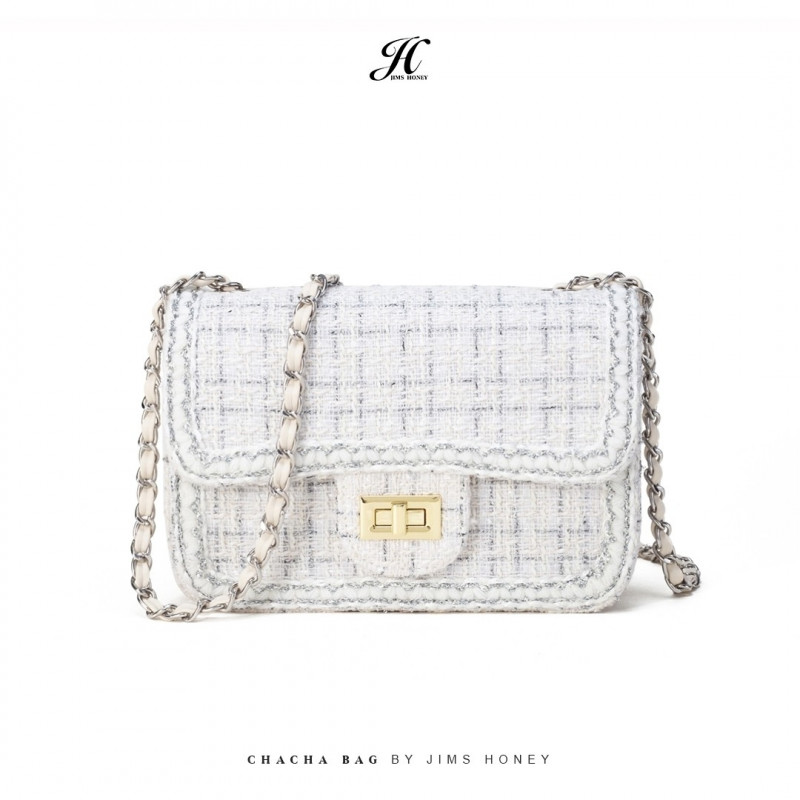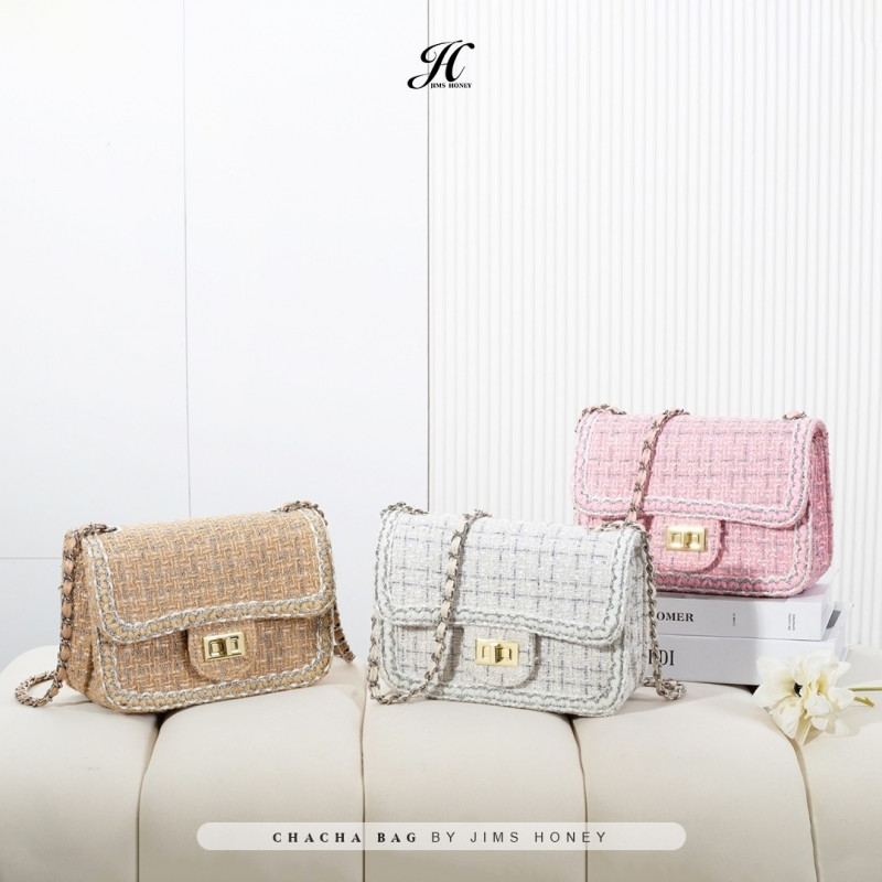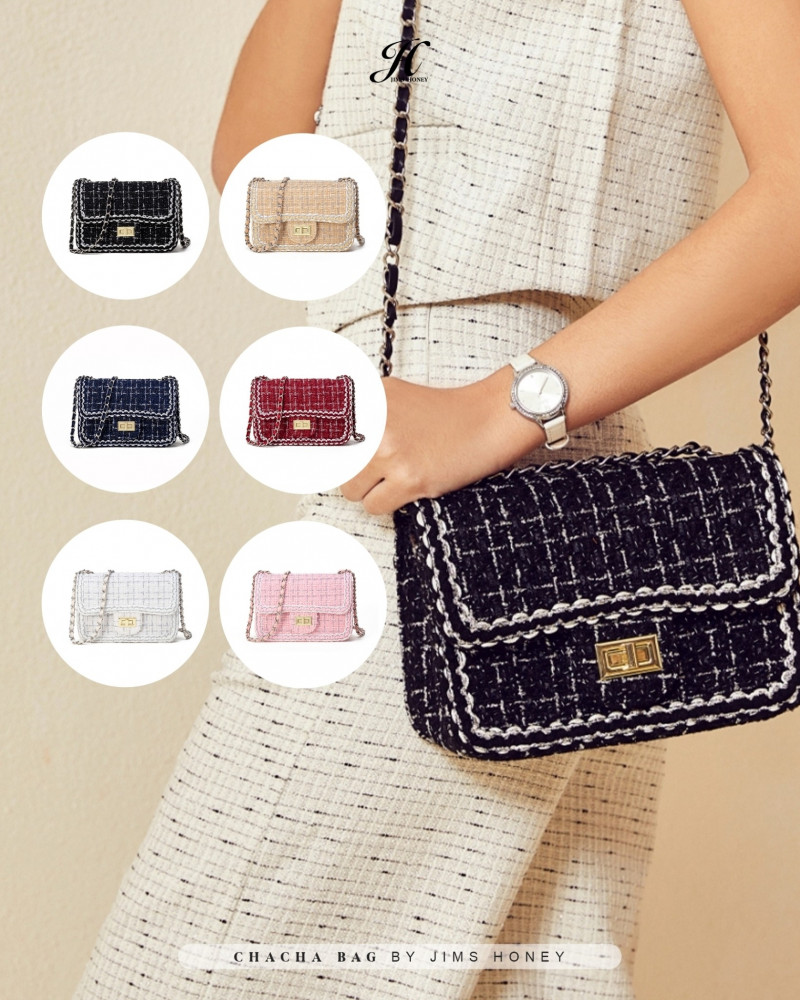Buat JHLadies yang lagi cari tas untuk digunakan daily activity sini merapat ke cha cha bag! Berbahan dasar tweed dan memiliki chain strap yang elegant membuat tas ini sangat cocok untuk segala acara!
