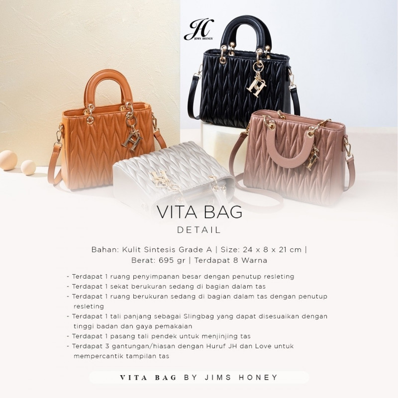Just look at the details memiliki desain yang mewah dan berkelas. So, Now is the time for you to shine! Yuk pamerin OOTD kamu dengan Vita Bag JHLadies🤍✨